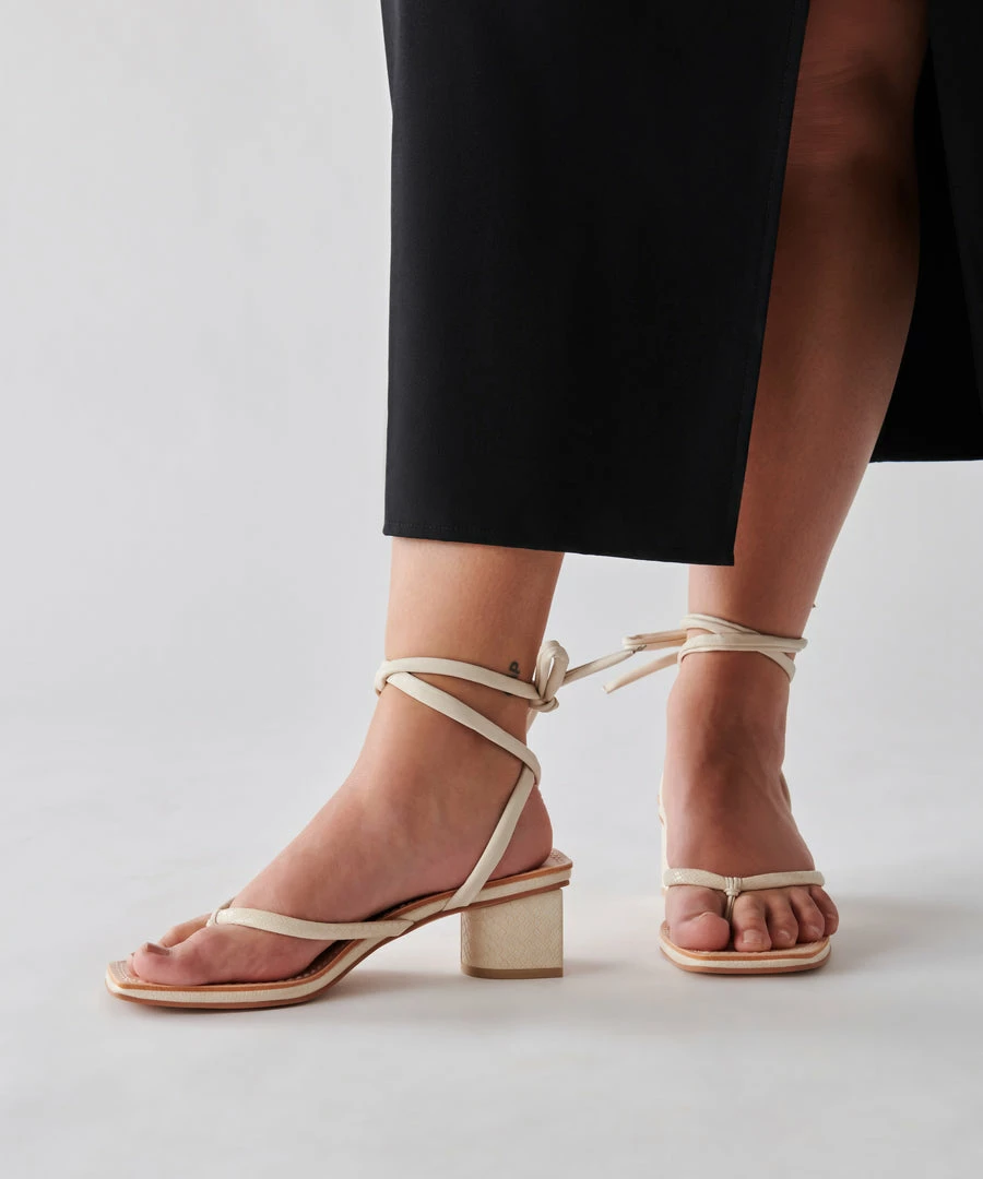 The understated summer sandal, all grown up. JORRY borrows from classic flip-flop styling but takes a decidedly different approach: a chunky, stacked heel and delicate ankle ties elevate this silhouette effortlessly.