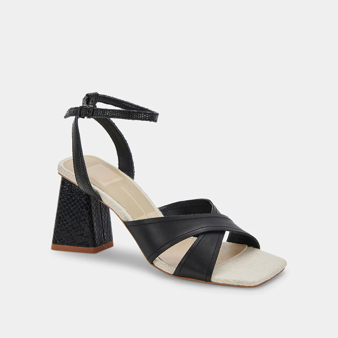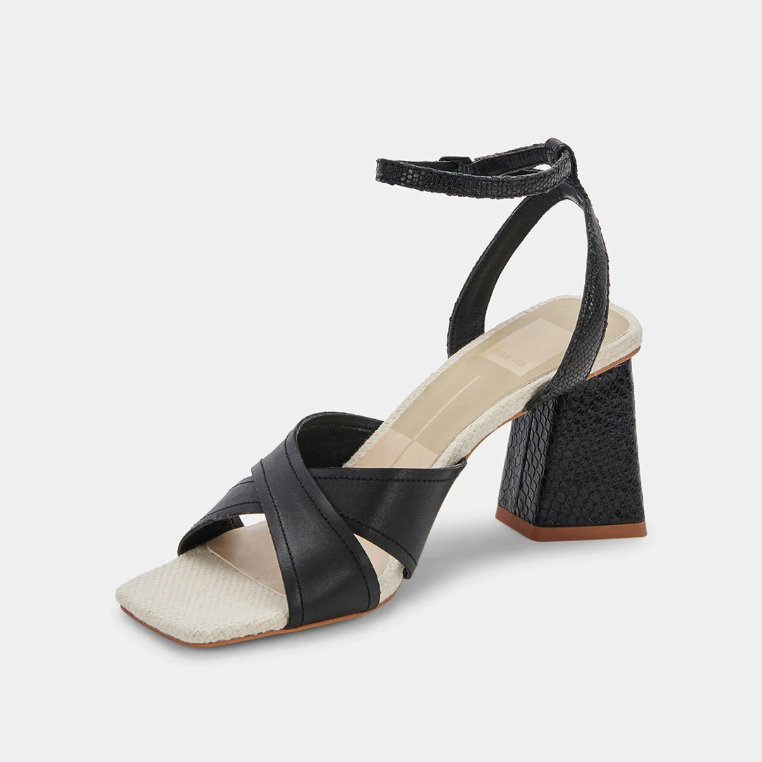 TIKI time. TIKI checks every box: a chunky, angular heel; wide crisscross straps; and a sleek ankle strap for even more delicate detail. In a palette of must-have muted neutrals that go with all this season’s best looks, she’s a total must-have for spring.